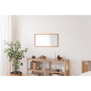 ●空間に自然と溶け込む天然木フレームのミラー。