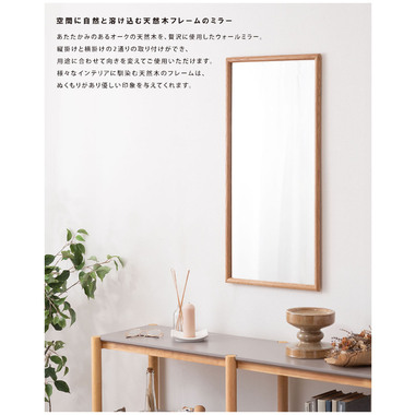 ●あたたかみのあるオークの天然木を贅沢に使用したウォールミラー。