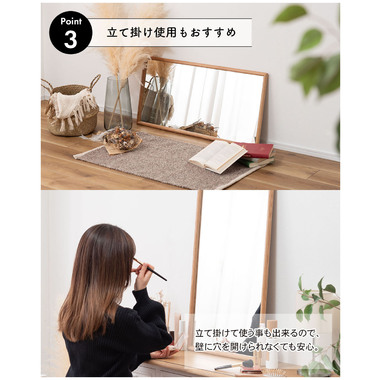 ●立て掛けて使う事も出来るので、壁に穴を開けられなくても安心。