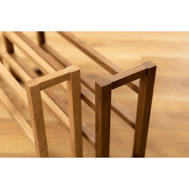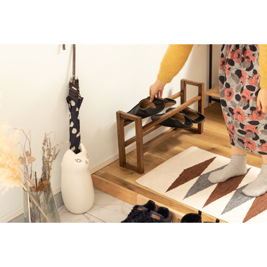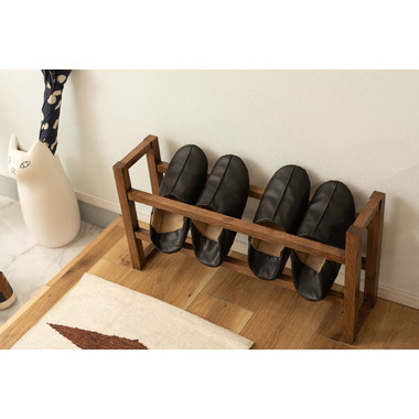 ●耐久性があり高級木材の一つとされる、美しく個性的な雰囲気を持つ天然木(オーク)の無垢材を使用したスリッパラック。●スリッパは横置きでも縦置きでも最大4足まで収納が可能。●また、すっきりとしたスリムサイズなので狭いエントランスや玄関スペースに最適なサイズ。●軽くて持ちやすい仕様なので移動も簡単。●床への傷防止フェルトが付いているので安心です。