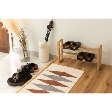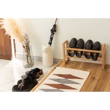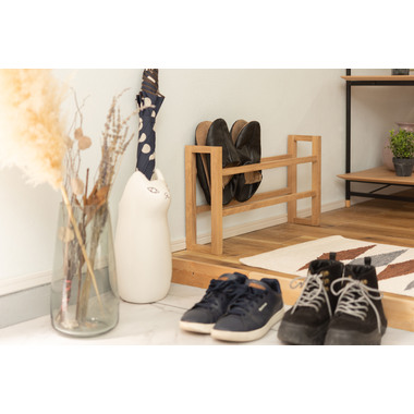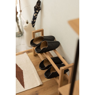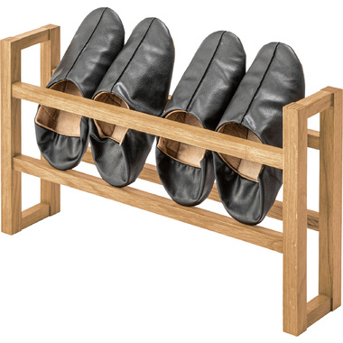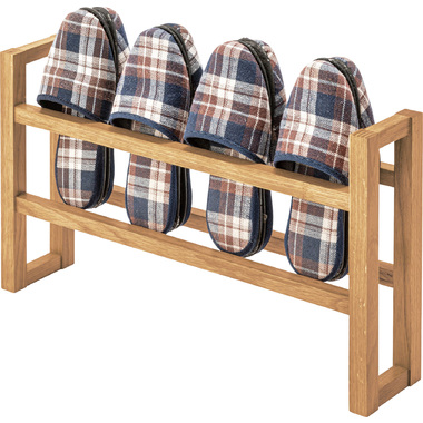 ●耐久性があり高級木材の一つとされる、美しく個性的な雰囲気を持つ天然木(オーク)の無垢材を使用したスリッパラック。●スリッパは横置きでも縦置きでも最大4足まで収納が可能。●また、すっきりとしたスリムサイズなので狭いエントランスや玄関スペースに最適なサイズ。●軽くて持ちやすい仕様なので移動も簡単。●床への傷防止フェルトが付いているので安心です。