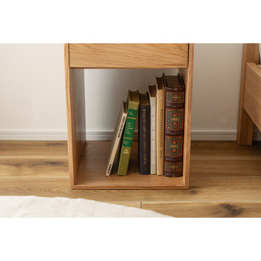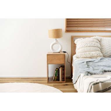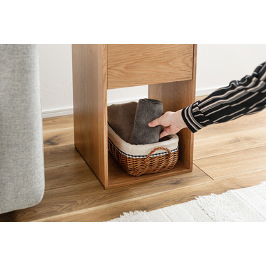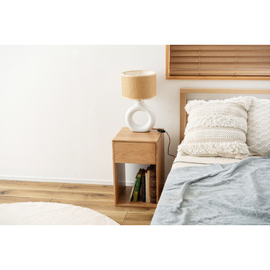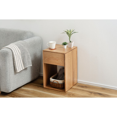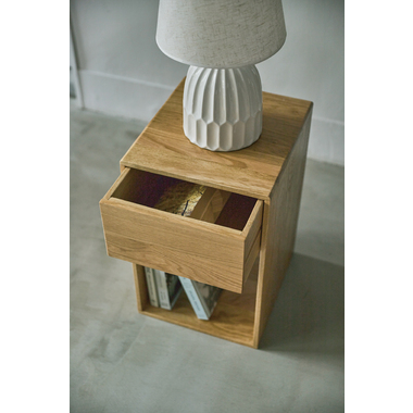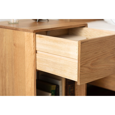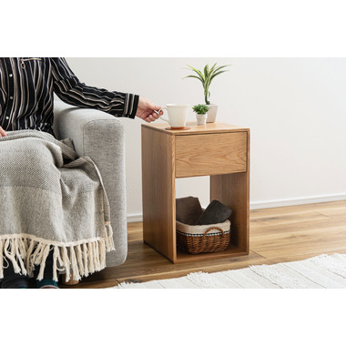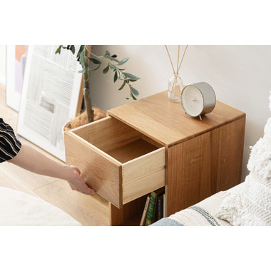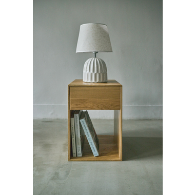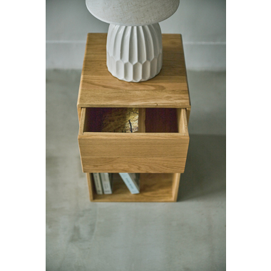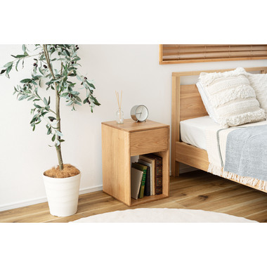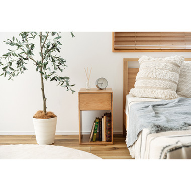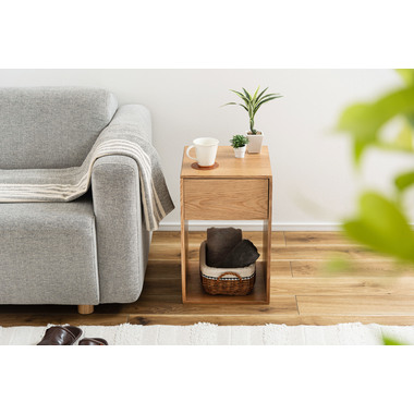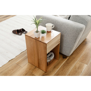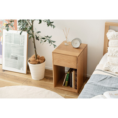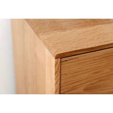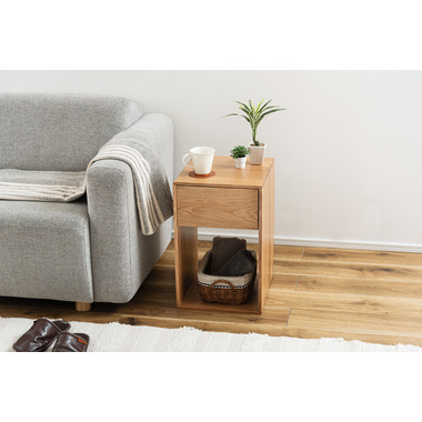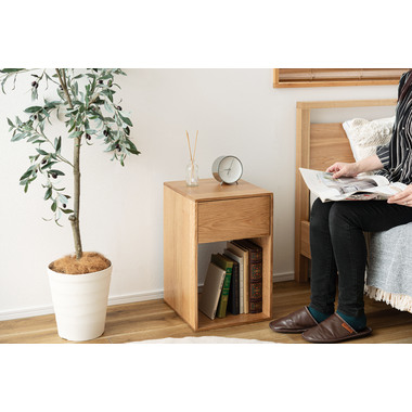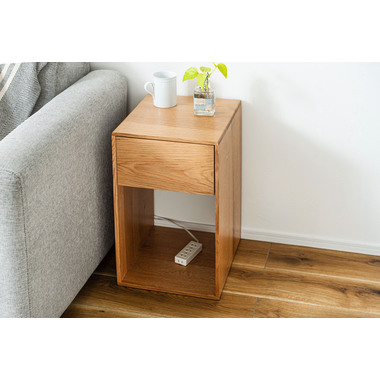 ●オークの木目が美しい、存在感のあるサイドチェスト。●個性豊かなホワイトオークのハギ材を使用した、飽きのこないデザインのチェスト。●ベッドやソファの横に最適なサイズで、縦長のシンプルなフォルムがすっきりとしたお部屋を演出します。●引き出しは収納に最適な深さと奥行で、見せる収納と隠す収納の両方としてお使いいただけます。