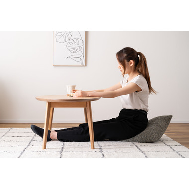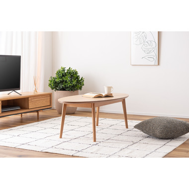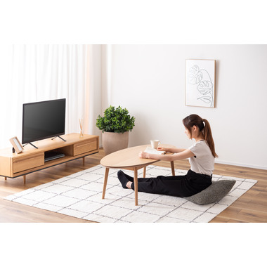 丸みのある曲線が柔らかい雰囲気を出しながらも、全体的にスタイリッシュなデザインのテーブル。オーバル型はリビングに佇んでいるだけで存在感を放ちます。