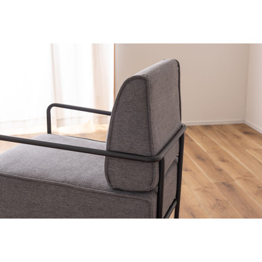 ●ゆったりと座れる広い座面幅と奥行きでありながら、肘掛けから脚部をシャープなスチールにすることで、圧迫感のないスタイリッシュな空間を演出します。●ホテルのラウンジを思わせるデザインはモダンインテリアにも合わせやすく、メインソファー横のパーソナルチェアとしてもご使用いただけます。●ゆったりと広い座面なので胡坐でも座れます。●厚みのある背面クッションが背中にフィットします。