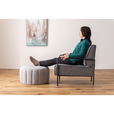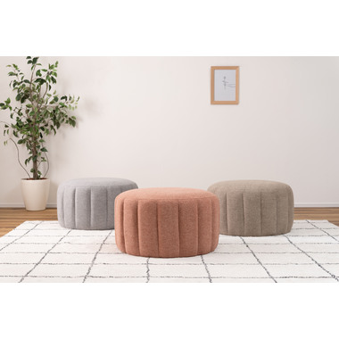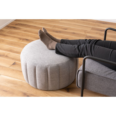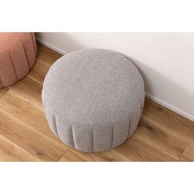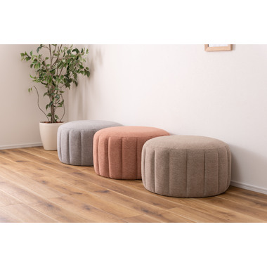 ●直径約60cmの、コロっとした姿が愛らしい大きめスツール。●優しく淡い色合いのくすみカラーのスツールなので、北欧テイストや韓国インテリアテイストとも好相性。●大きめサイズなのでお部屋の中でもちょっと目を引くワンポイントデザインになります。●座面は沈み込みを抑えたしっかりとした作りなので、ソファ前に置いてオットマンとしても使えます。●また、座椅子やベッドの隣に置いてサイドテーブルとして使っても便利。