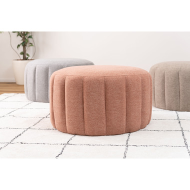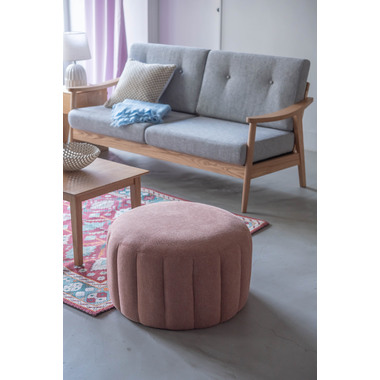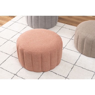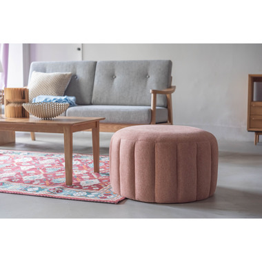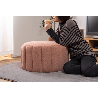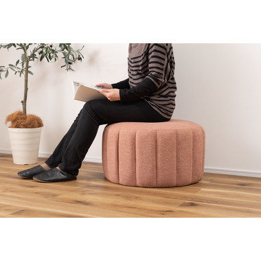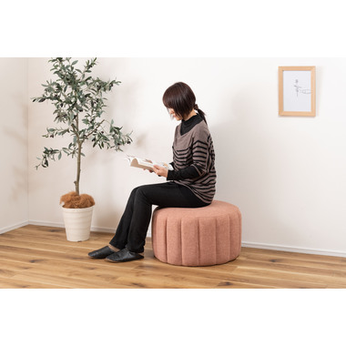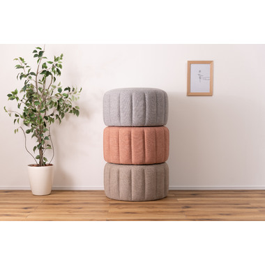 ●直径約60cmの、コロっとした姿が愛らしい大きめスツール。●優しく淡い色合いのくすみカラーのスツールなので、北欧テイストや韓国インテリアテイストとも好相性。●大きめサイズなのでお部屋の中でもちょっと目を引くワンポイントデザインになります。●座面は沈み込みを抑えたしっかりとした作りなので、ソファ前に置いてオットマンとしても使えます。●また、座椅子やベッドの隣に置いてサイドテーブルとして使っても便利。