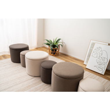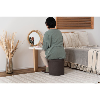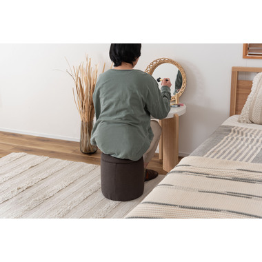 座面を取り外して収納可能なスツール。丸みを帯びたフォルムが可愛らしいデザインです。ドレッサースツールとしてもお使いいただけます。
