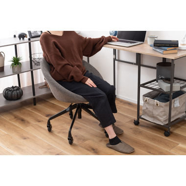 ●ころんとした丸いフォルムと、シンプルなカラーリングのコントラストが目を引くデスクチェア。