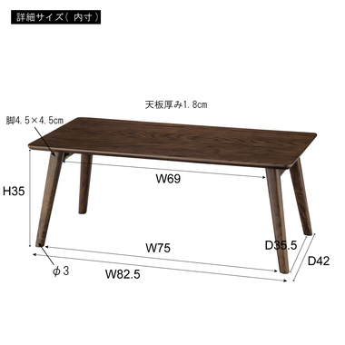 ●天板の角や脚の外側に丸みを持たせた、柔らかく優しいデザイン。