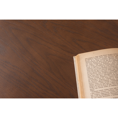 ●高級木材である天然木オーク(突板)を使用し、落ち着いたブラウンカラーで仕上げた重厚感のあるテーブル。