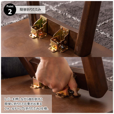 ●レバーを押しながら脚を倒すと簡単に折りたためる、フォールディング(折りたたみ)仕様。