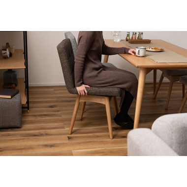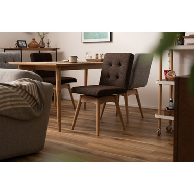 座面回転するダイニングチェア。回転式なのでスペースを取らずに立ち上がりが可能です。