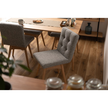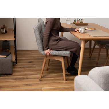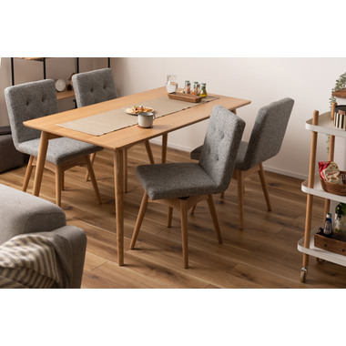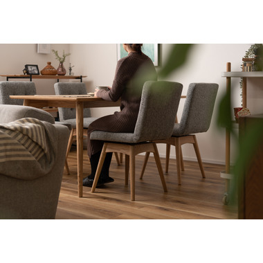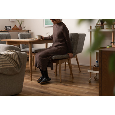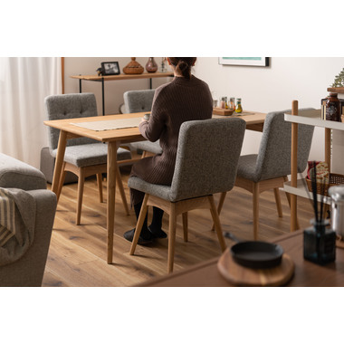 座面回転するダイニングチェア。回転式なのでスペースを取らずに立ち上がりが可能です。