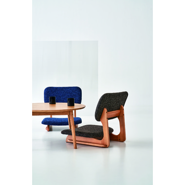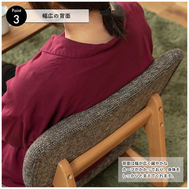 ●ナチュラルな生地感と天然木の組み合わせが優しさを感じさせるフロアチェア。