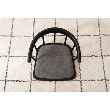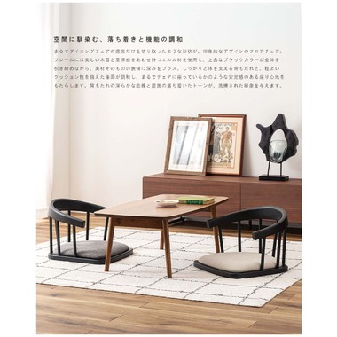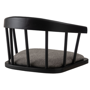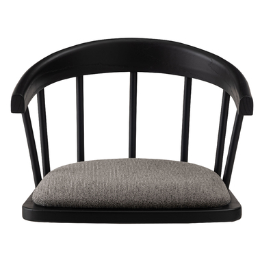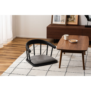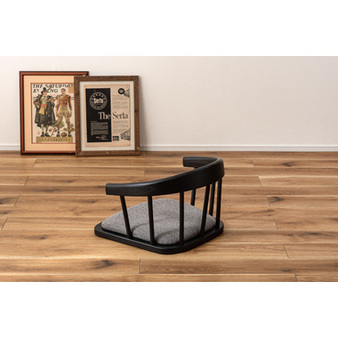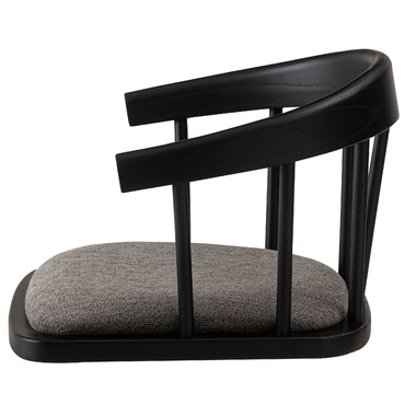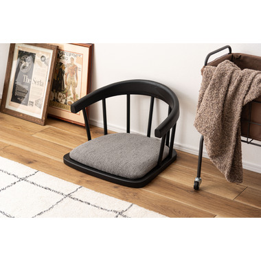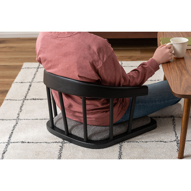 まるでダイニングチェアの座面だけを切り取ったような形状が、印象的なデザインのフロアチェア。フレームには美しい木目と重厚感をあわせ持つエルム材を使用し、上品なブラックカラーが全体を引き締めながら、素材そのものの表情に深みをプラス。しっかりと体を支える背もたれと、程よいクッション性を備えた座面が調和し、まるでチェアに座っているかのような安定感のある座り心地もたらします。背もたれの滑らかな曲線と座面の落ち着いたトーンが、洗練された印象を与えます。