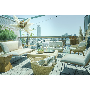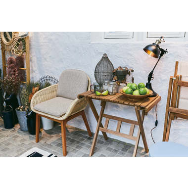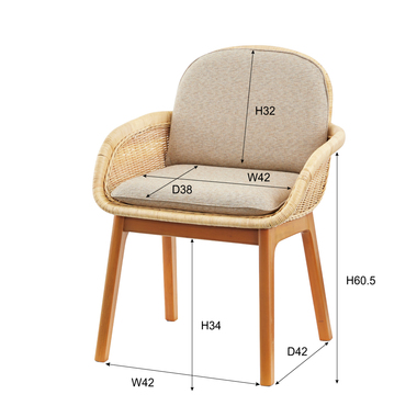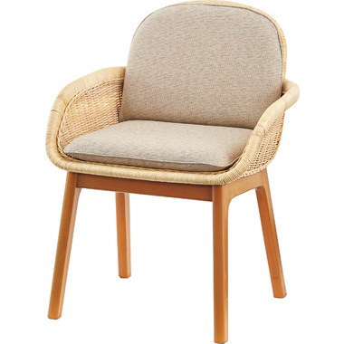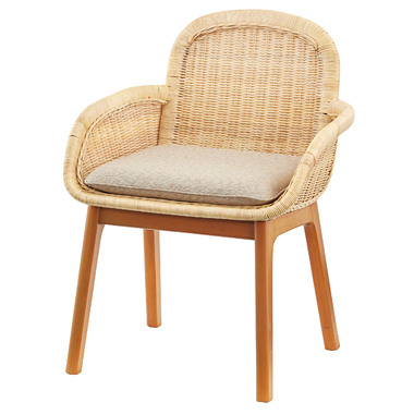 ●天然素材のラタン(籐)と天然木ミンディを使用した、風合い豊かなチェア。