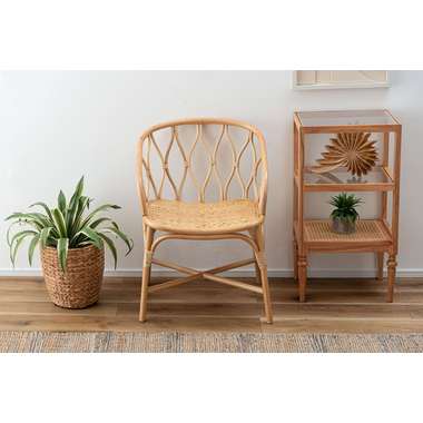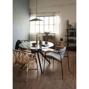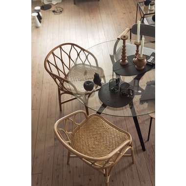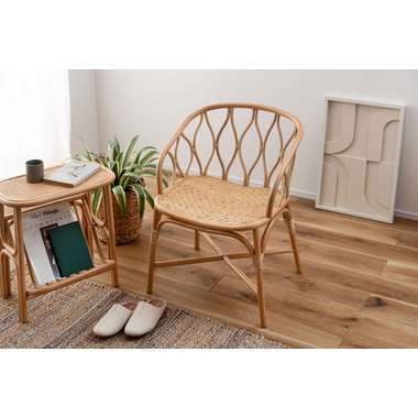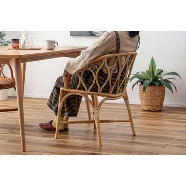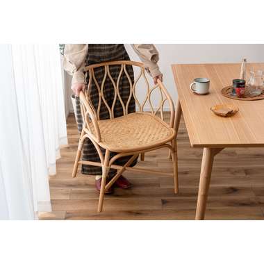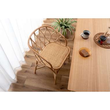 曲線を重ねた背フレームが生み出す陰影の美しさが印象的なチェア。軽快なフォルムでありながら、ラタンの質感がほどよい温もりをプラスしモダンな空間にもナチュラルな空気感をもたらします。