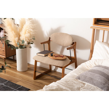 ●天然木とファブリックの組み合わせと直線的なスチール素材が特徴的なデザインのフロアチェア。●コンパクトサイズなので、リビングやダイニング、和室やベッドルームなど様々なシーンで活躍。●軽量設計なので持ち運びもラクラク。●フレームは高級木材の一つ、天然木(チーク)を採用。品のある風合いはインテリアにも最適です。●手にしっくり馴染む天然木のぬくもりも魅力の一つ。●脚裏フェルト付きなので、床への傷防止になり安心です。●3サイズ展開なので、用途や場所に合わせてお選びいただけます。