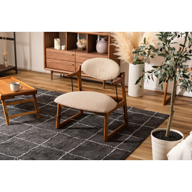 ●天然木とファブリックの組み合わせと直線的なスチール素材が特徴的なデザインのフロアチェア。●コンパクトサイズなので、リビングやダイニング、和室やベッドルームなど様々なシーンで活躍。●軽量設計なので持ち運びもラクラク。●フレームは高級木材の一つ、天然木(チーク)を採用。品のある風合いはインテリアにも最適です。●手にしっくり馴染む天然木のぬくもりも魅力の一つ。●脚裏フェルト付きなので、床への傷防止になり安心です。●3サイズ展開なので、用途や場所に合わせてお選びいただけます。