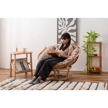 ●天然ラタンのぬくもりとボリュームのあるクッションの贅沢なリラックススペース。