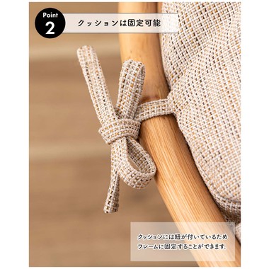●クッションには紐が付いているためフレームに固定することができます。