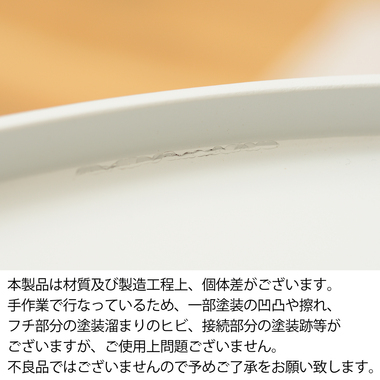 【注意事項】※本製品は材質及び製造工程上、個体差がございます。手作業で行なっているため、一部塗装の凹凸や擦れ、フチ部分の塗装溜まりのヒビ、接続部分の塗装跡等がございますが、使用上の問題はございません。不良品ではございませんので予め了承をお願いいたします。
