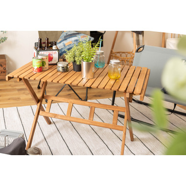 ●天然木(アカシア)にオイル仕上げで完成させた、風合いのあるテーブル。