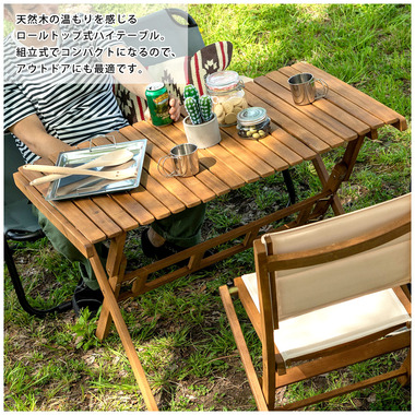 ●天然木の温もりを感じるロールトップ式ハイテーブル。