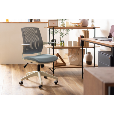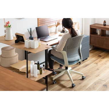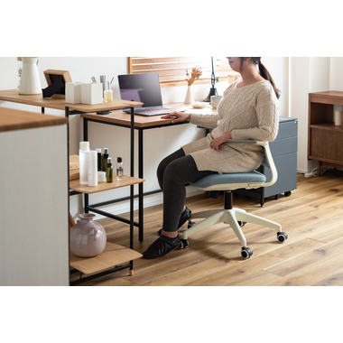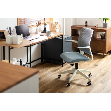 背もたれが背中に合わせて形状が変わるオフィスチェア。背もたれの特殊加工により座りながら背中をぐっと反らせることができるので、作業中にストレッチ&リフレッシュができます。カラーリングもブラックフレームベースで3色、ホワイトフレームベースで3色の合計6色のラインナップなので、様々なテイストに合わせる事ができます。