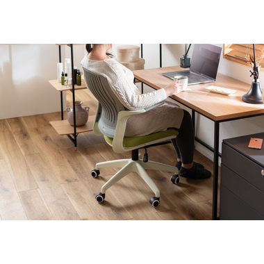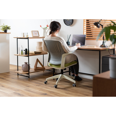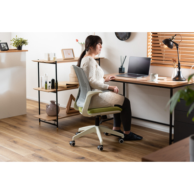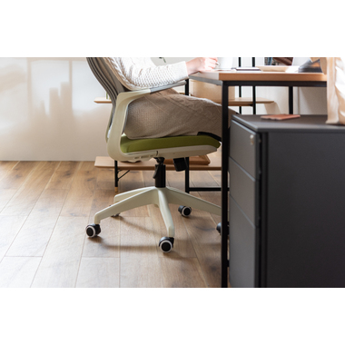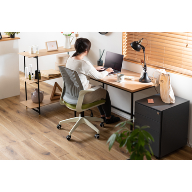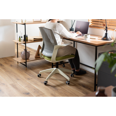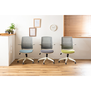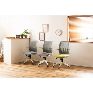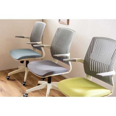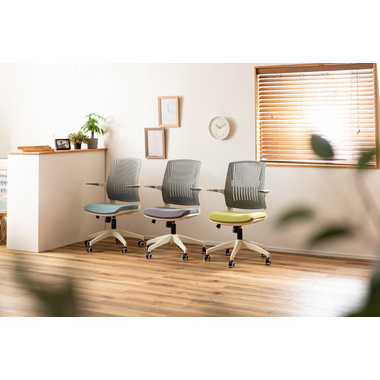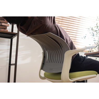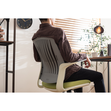 背もたれが背中に合わせて形状が変わるオフィスチェア。背もたれの特殊加工により座りながら背中をぐっと反らせることができるので、作業中にストレッチ&リフレッシュができます。カラーリングもブラックフレームベースで3色、ホワイトフレームベースで3色の合計6色のラインナップなので、様々なテイストに合わせる事ができます。