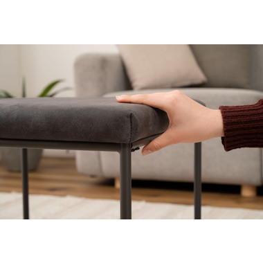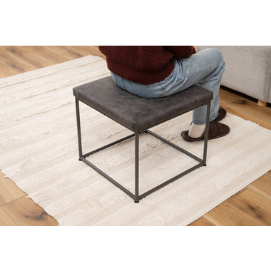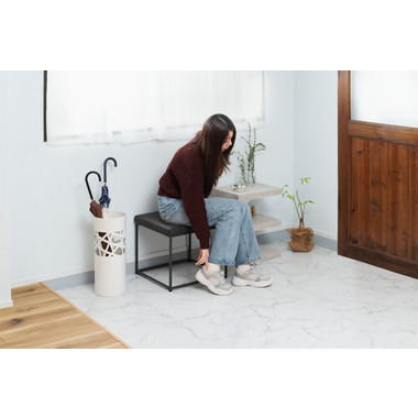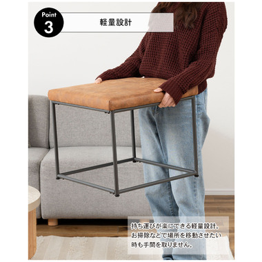 ●クロスレザー仕様で高級感のある座面と、スタイリッシュなスチール脚が印象的なスツール。