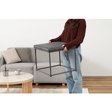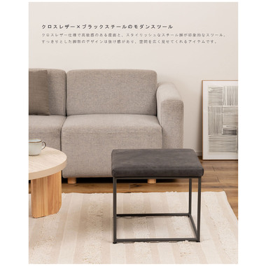 ●クロスレザー×ブラックスチールのモダンスツール。