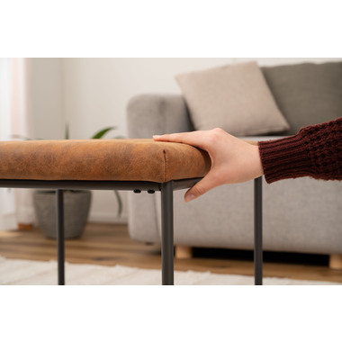 ●クロスレザー仕様で高級感のある座面と、スタイリッシュなスチール脚が印象的なスツール。