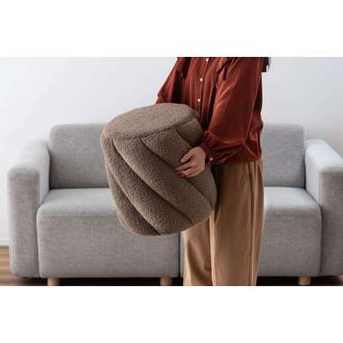 シンプルながらぬくもりを感じさせる、ツイストデザインのスツール。ねじれを加えたツイストデザインが立体的な陰影を生み、落ち着きの中にさりげない遊び心を感じさせる、存在感のあるアイテムです。ナチュラルな質感の生地がやさしい印象を与え、様々なテイストのインテリアと調和します。