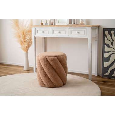 シンプルながらぬくもりを感じさせる、ツイストデザインのスツール。ねじれを加えたツイストデザインが立体的な陰影を生み、落ち着きの中にさりげない遊び心を感じさせる、存在感のあるアイテムです。ナチュラルな質感の生地がやさしい印象を与え、様々なテイストのインテリアと調和します。