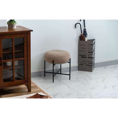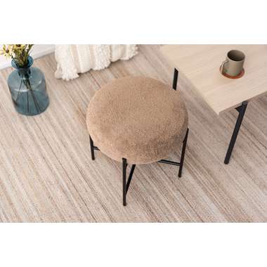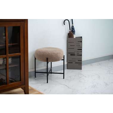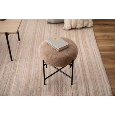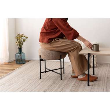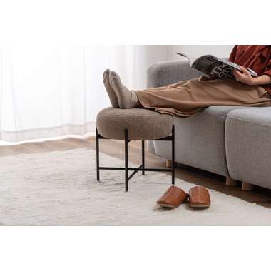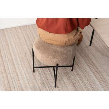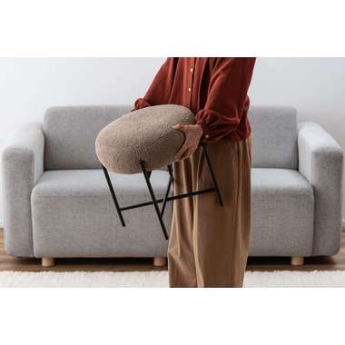 ●マットな質感のブラックスチールと、落ち着いた色味の生地が織りなすコントラストが目を引くスツール。