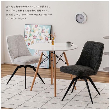 ●立体的で動きのあるファブリックを採用し、シンプルで洗練された印象の回転チェア。