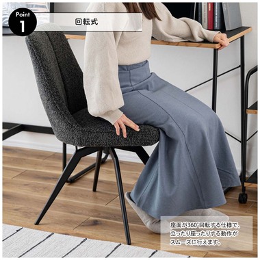 ●座面が360°回転式なので、テーブルへの出入りの動作がスムーズに。