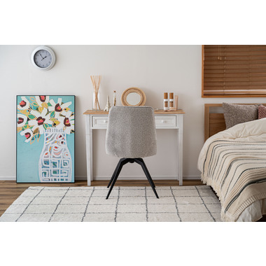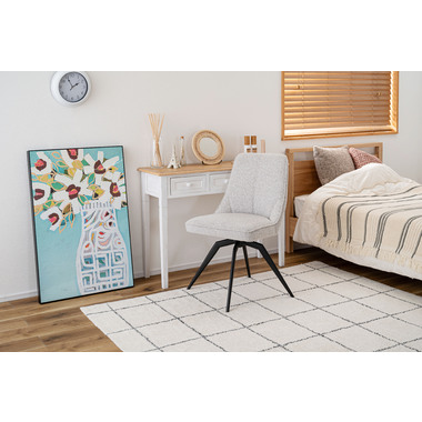 ●立体的で動きのあるファブリックを採用し、シンプルで洗練された印象の回転チェア。
