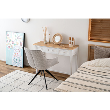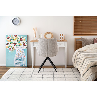 ●立体的で動きのあるファブリックを採用し、シンプルで洗練された印象の回転チェア。