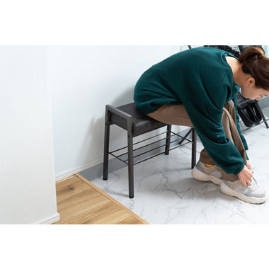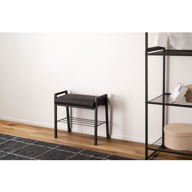 下部にはスチール素材のシンプルな棚板が付いているので、ちょっとした雑貨をディスプレイしたり、玄関先で使用する際はスリッパなどを置いて置いたり様々な使い方で楽しめるアイテムです。
