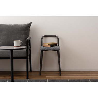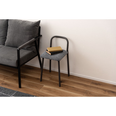 ●滑らかなスチール脚に、柔らかなファブリック座面を組み合わせたスツール。