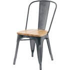 ●スタイリッシュなアイアンとナチュラルな天然木でおしゃれなカフェ風スタイルに。●座面は美しい木目が人気の天然木(アッシュ)を使用。アイアンフレームとの相性も良くデザイン性の高い仕上がり。●BK(ブラック)カラーは光沢の無いマットな仕上がり。SV(シルバー)カラーは、要所々々に色差を出しヴィンテージ感のあるテイストに仕上げました(半艶仕上げ)。●脚先には床への傷防止になるパーツが付いているので安心です。 ※スタッキング(積み重ね)をすると木製座面へ傷等のダメージが出てしまう為、スタッキングはご遠慮ください。