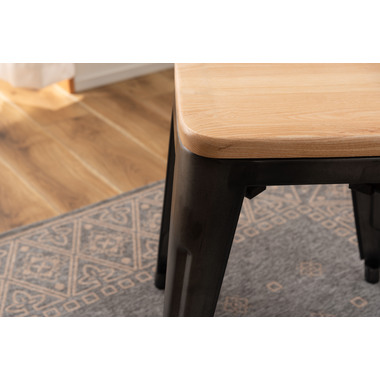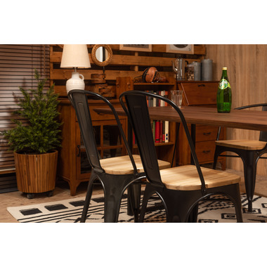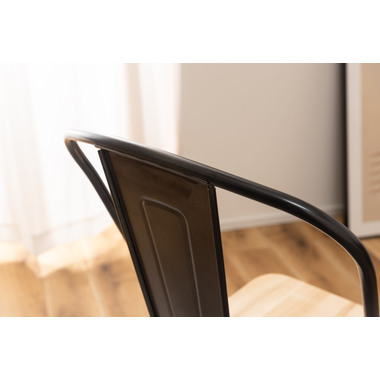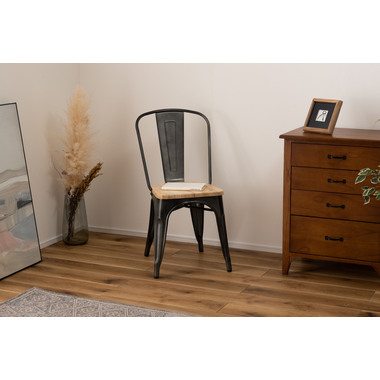 ●スタイリッシュなアイアンとナチュラルな天然木でおしゃれなカフェ風スタイルに。●座面は美しい木目が人気の天然木(アッシュ)を使用。アイアンフレームとの相性も良くデザイン性の高い仕上がり。●BK(ブラック)カラーは光沢の無いマットな仕上がり。SV(シルバー)カラーは、要所々々に色差を出しヴィンテージ感のあるテイストに仕上げました(半艶仕上げ)。●脚先には床への傷防止になるパーツが付いているので安心です。 ※スタッキング(積み重ね)をすると木製座面へ傷等のダメージが出てしまう為、スタッキングはご遠慮ください。