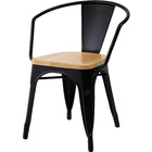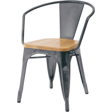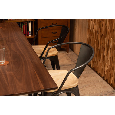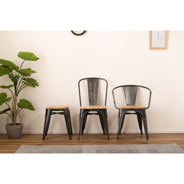●スタイリッシュなアイアンとナチュラルな天然木でおしゃれなカフェ風スタイルに。●座面は美しい木目が人気の天然木(アッシュ)を使用。アイアンフレームとの相性も良くデザイン性の高い仕上がり。●BK(ブラック)カラーは光沢の無いマットな仕上がり。SV(シルバー)カラーは、要所々々に色差を出しヴィンテージ感のあるテイストに仕上げました(半艶仕上げ)。●脚先には床への傷防止になるパーツが付いているので安心です。 ※スタッキング(積み重ね)をすると木製座面へ傷等のダメージが出てしまう為、スタッキングはご遠慮ください。
