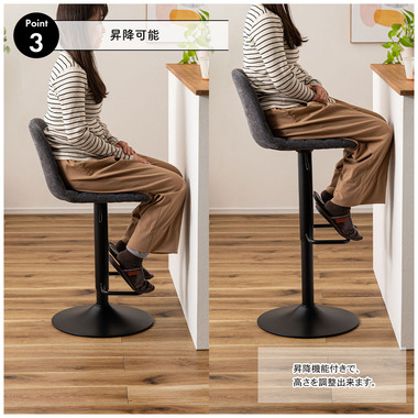 ●座面は回転式で昇降可能な、機能性も優れたアイテム。
