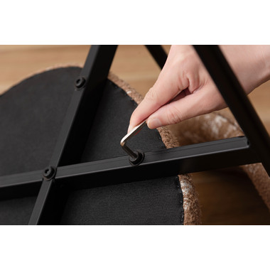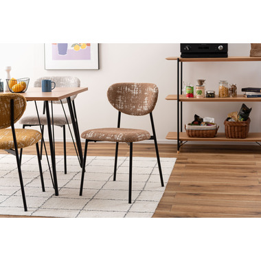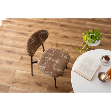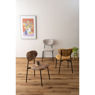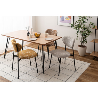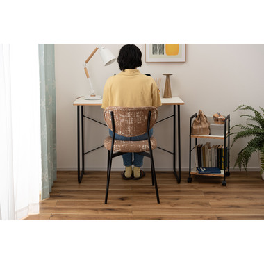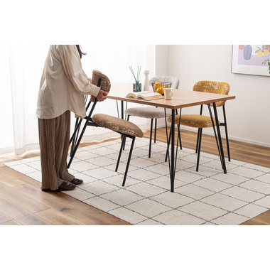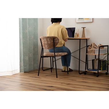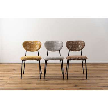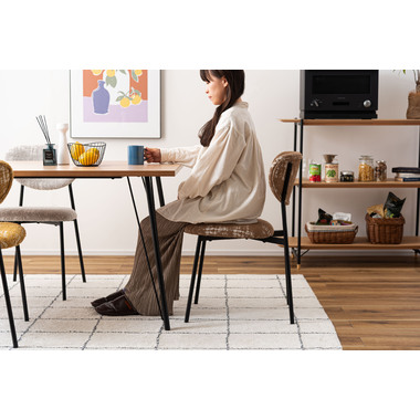 ●趣があるファブリックとブラックスチールの異素材の組み合わせが美しいチェア。