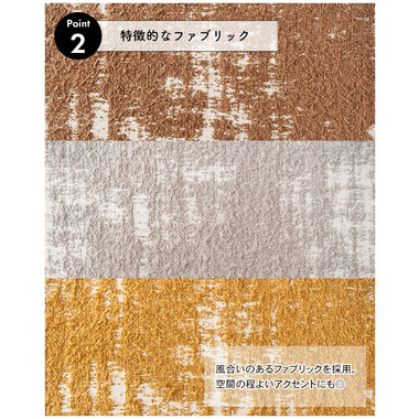 ●特徴的なファブリックがレトロモダンな雰囲気を演出。