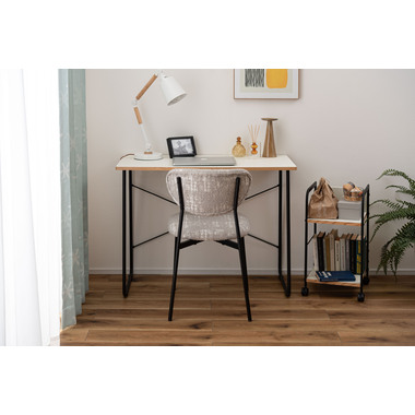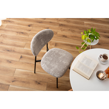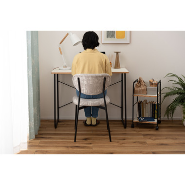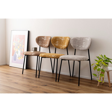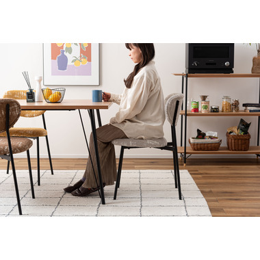 ●趣があるファブリックとブラックスチールの異素材の組み合わせが美しいチェア。