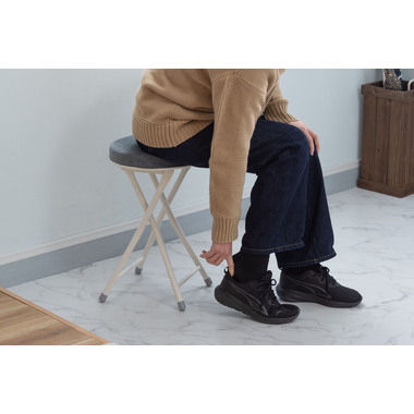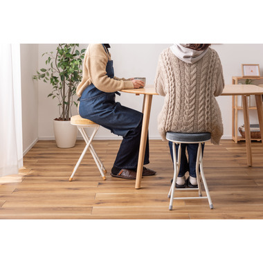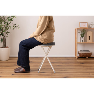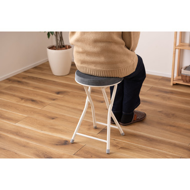 ●座り心地の良い厚みのある座面。●程よく弾力があるので、いつまでも座っていられる座り心地。●脚を広げた状態で持ち上げても脚が閉じないよう、座面下にバネ式のロック付き。●折りたたみ式なので使わない時はすっきりとコンパクト収納。●リビング、ダイニング、キッチン、洗面所、玄関周りのちょっとした隙間に収納可能。●軽量仕様なのでお掃除の時の移動や持ち運びもらくらく。●座面には手触りが良く高級感のあるベロア調生地を使用。●座面サイズは30cmと使いやすいサイズ。来客用に、作業用に、ちょっと休憩用に便利なサイズ。●脚先キャップが付いているので床への傷防止にもなり安心。
